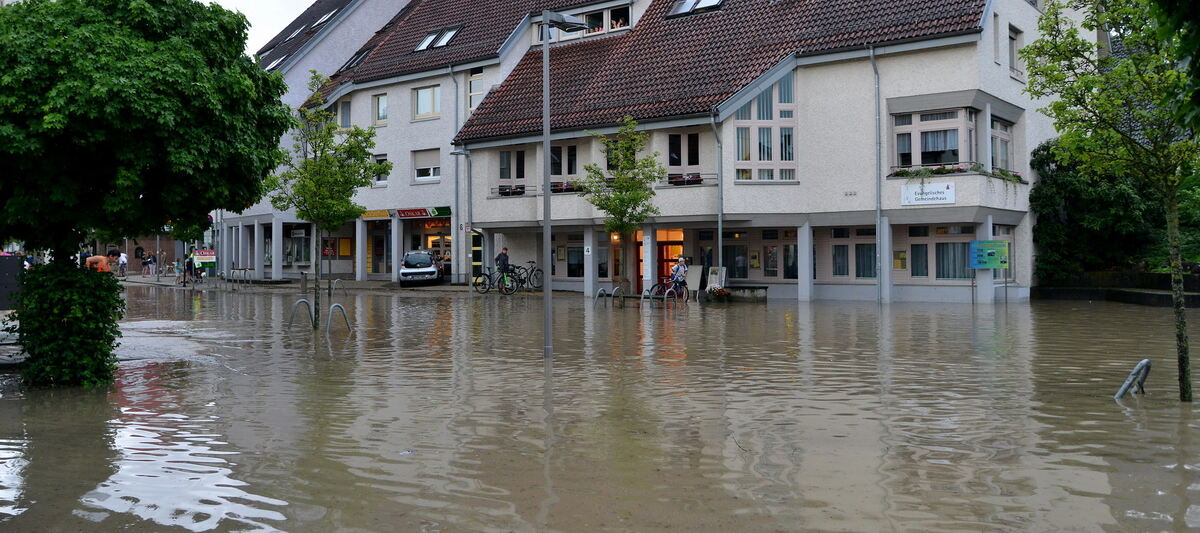 Die Steinachstraße in Betzingens Ortsmitte stand am Montagabend komplett unter Wasser. FOTO: NIETHAMMER