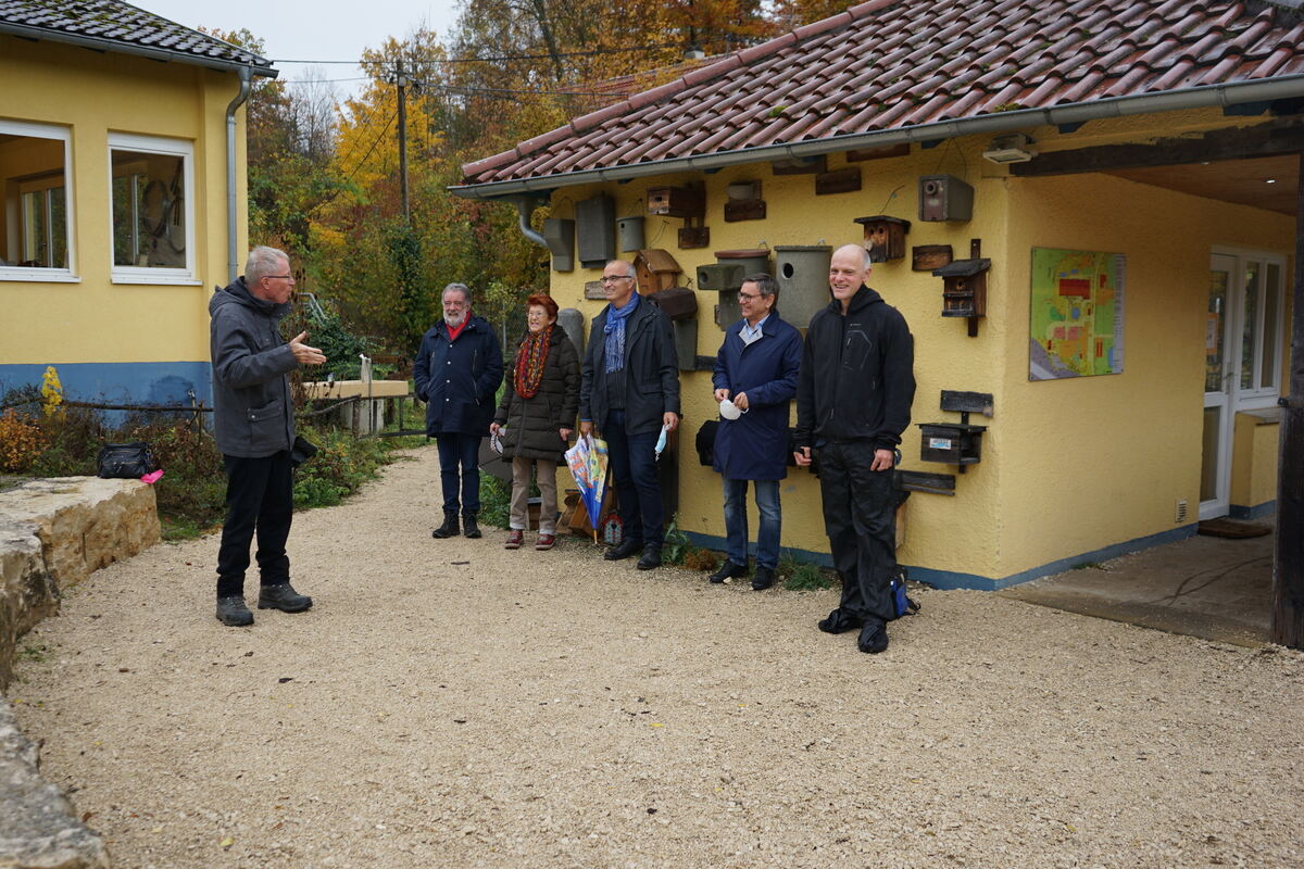 Über die schwierige Lage des Umweltbildungszentrums Listhof in Coronazeiten informierten aus dem Vorstand des Trägervereins (von links) Helmut Treutlein, Johannes Schemp und Inge Zöllner die Landtagsabgeordneten Ramazan Selcuk (SPD), Rudi Fischer (FDP) und Thomas Poreski (Grüne). FOTO: LEIPOLD