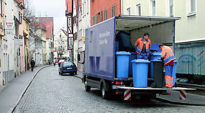 Blaue Tonne für die Altstadt: Zur nächsten Altpapier-Abholung im März gibt's hier keine Zeitungsbündel und Pappkartons mehr an den Straßen.