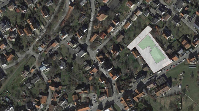 So könnte es einmal ausshen: Die markierte Fläche stellt das neue Pflegeheim an der Brühlstraße mit seinem großen Außenbereich dar. Foto: gea