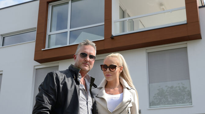 Ganz schön reich, aber eine Woche lang arm: Oliver und Bettina Gekeler vor ihrem Reutlinger Zuhause. FOTO: PIETH