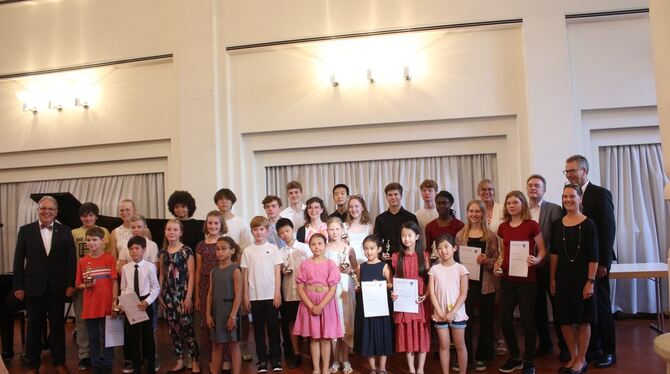 Alle 34 Preisträgerinnen und Preisträger im Spitalhofsaal.