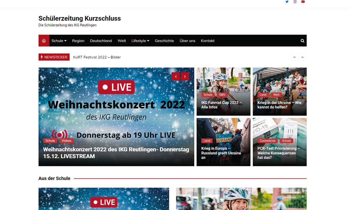 Insgesamt haben bei der Wettbewerbsrunde 32 Schulen ihre Schülerzeitschriften eingereicht. 14 Preise wurden verliehen. »Es ist ziemlich cool, dass wir gewonnen haben. Wir haben definitiv nicht damit gerechnet und waren sehr überrascht und glücklich«, freut sich Sauter. Die Schülerzeitung gibt es gedruckt schon seit den 1970er-Jahren. Die preisgekrönte Webseite ist erst vor rund zwei Jahren dazu gekommen. »Der Onlineauftritt von ›Kurzschluss‹ ist eigentlich durch Corona entstanden. Wir wollten die gedruckte Zeitung nicht fallen lassen und den Schülern online auch weiterhin Informationen bieten.« (GEA)