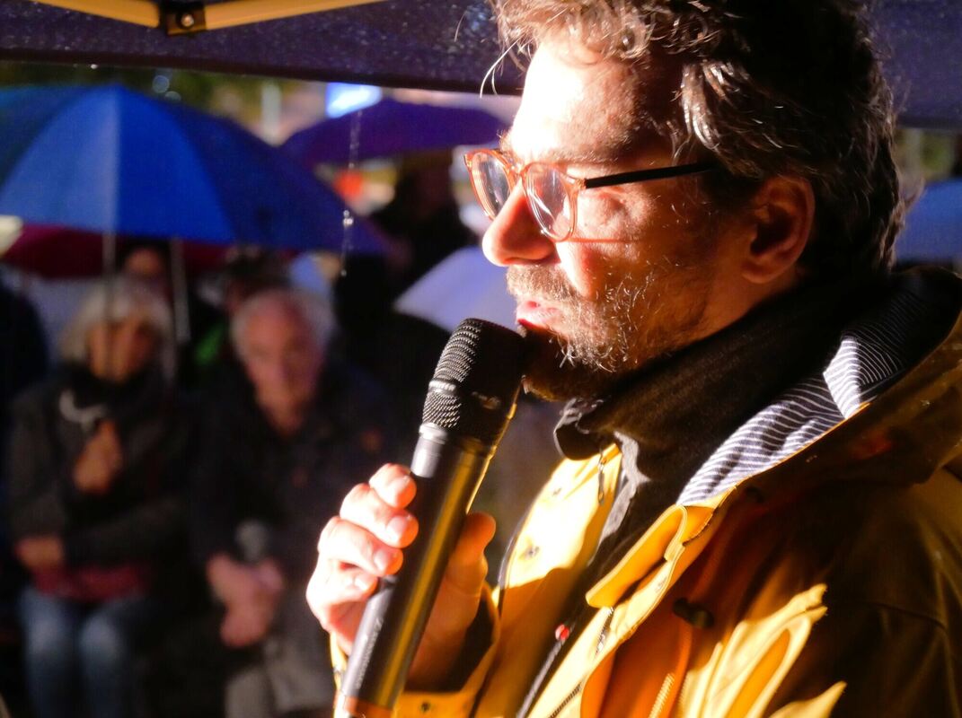 In strömendem Regen berichtete der Reutlinger Kriegsreporter Wolfgang Bauer am Mittwochabend bei der »Straßen-Uni« im Ringelbachgebiet über den Konflikt in Israel und im Gazastreifen.