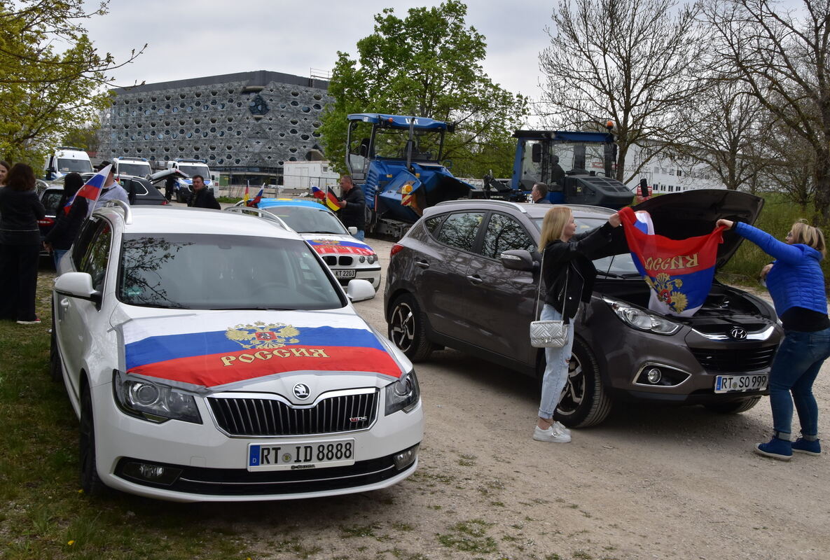 Unter den Demonstranten waren neben russischstämmigen Menschen auch kasachisch-, georgisch- und griechischstämmige Teilnehmer. Sie befestigten große Flaggen, auch Deutschland-Flaggen, auf den Motorhauben.