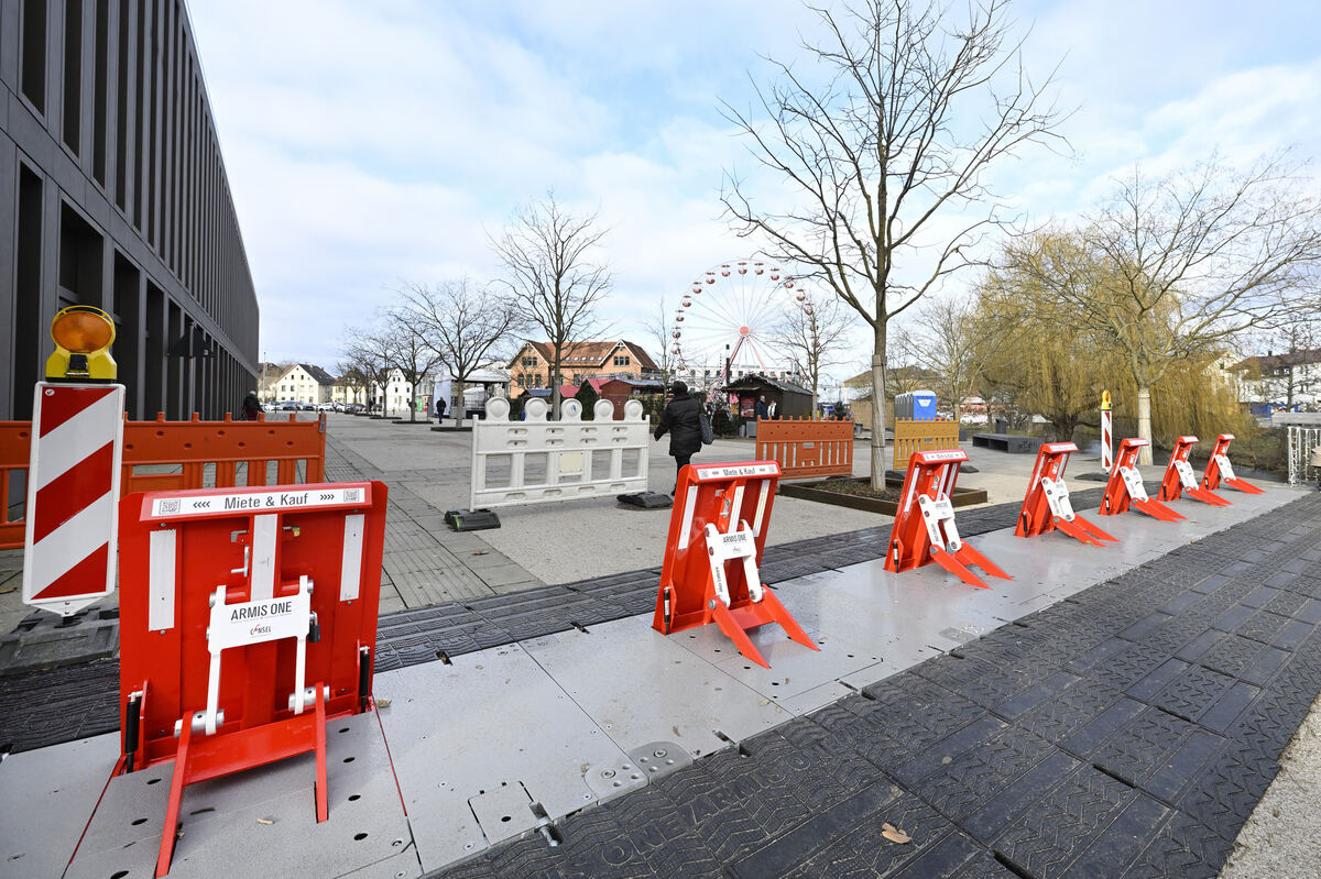 Eine mobile Sperre an der Stadthalle soll den Weihnachtsmarkt im Reutlinger Bürgerpark schützen.