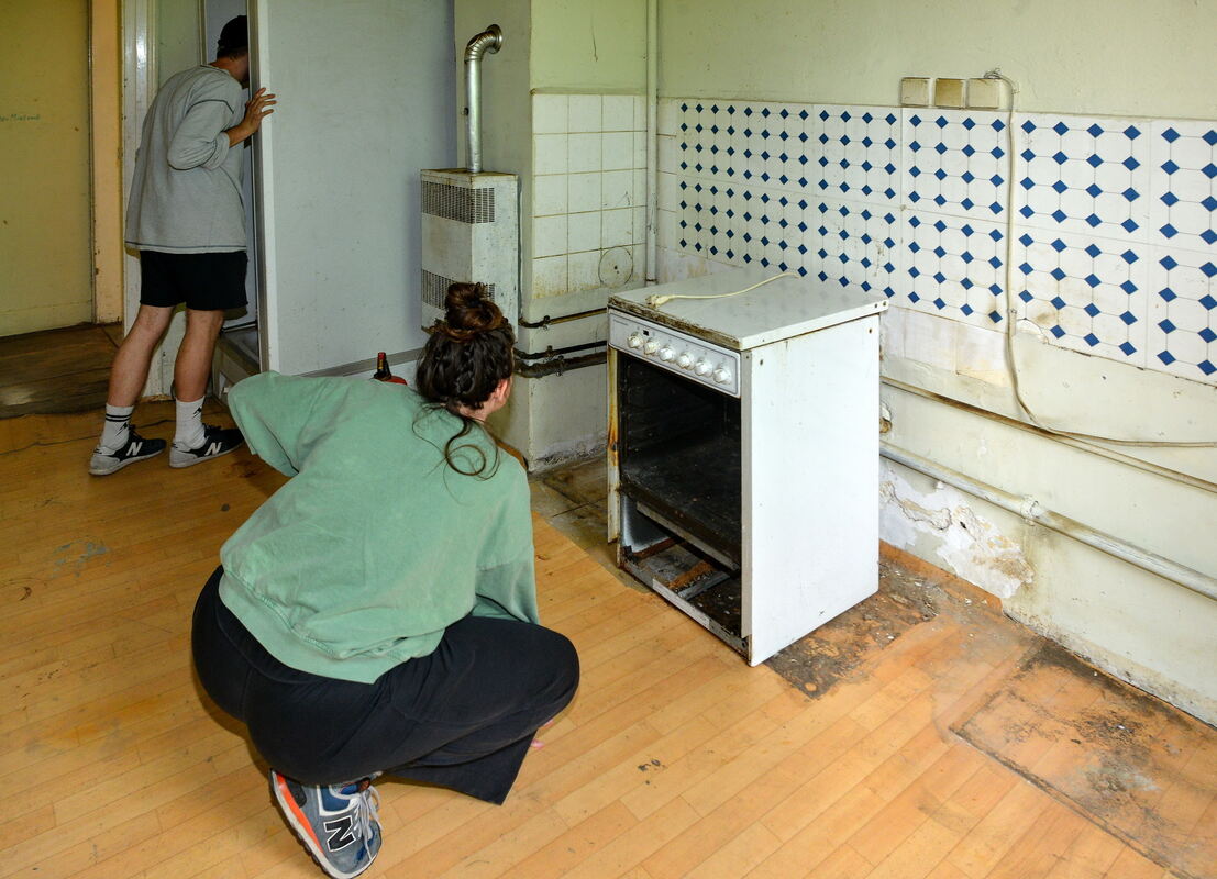 Die Besetzer Robin und Eva in der Kaiserstraße 39: Seit fünf Jahren steht das Haus leer. Alles ist marode. FOTO: NIETHAMMER