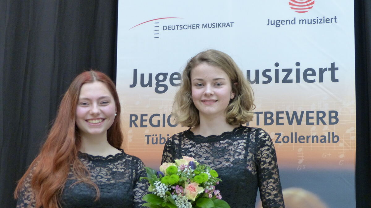 Zwei von vielen Preisträgern des Regionalwettbewerbs »Jugend musiziert« 2019: In der Kategorie Vokal-Ensemble freuen sich Louisa Mayer und Judith Kaiser aus Reutlingen über ihre 23 Punkte und die Weiterleitung zum Landeswettbewerb. FOTO: RIEDEL