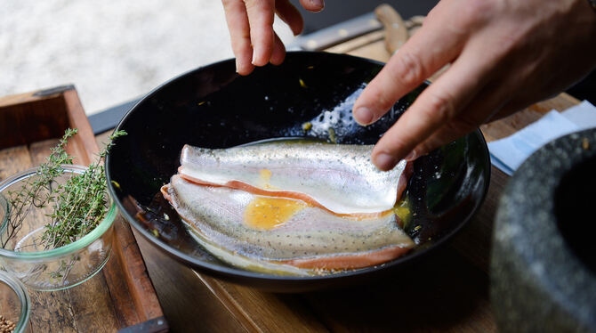 Rössle-Chefkoch Roland Stoll grillt Forelle aus der Echaz