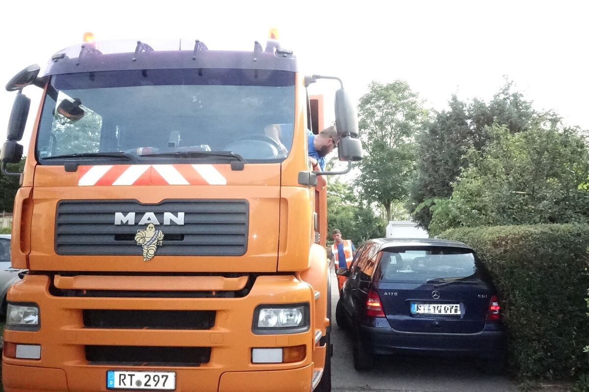 Rücksichtslose Autofahrer behindern Müllfahrzeuge