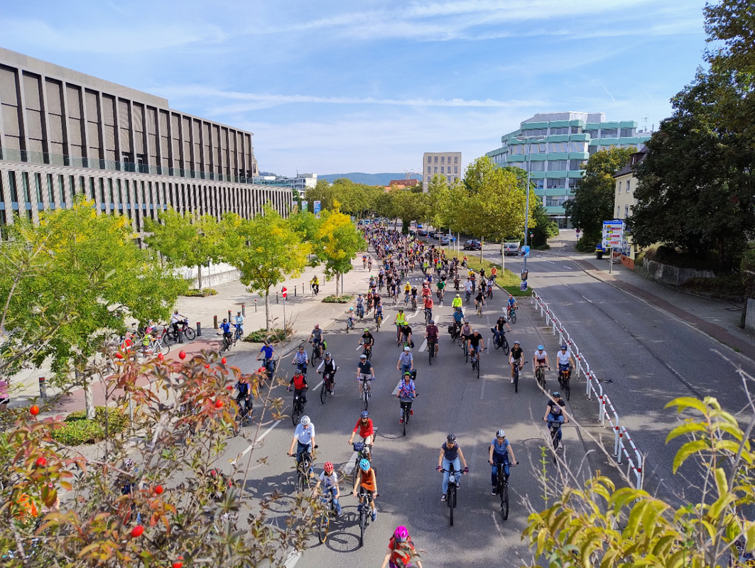 REUTLINGEN. Es war ein absolut ungewöhnliches Bild: Am Sonntagnachmittag eroberten tausende Radfahrer die Bundesstraße zwischen Reutlingen und Tübingen. Sie demonstrierten für Klimaschutz, bessere Radwege und weniger Autos. Von der Reutlinger Stadthalle ging's zum Tübinger Europaplatz.