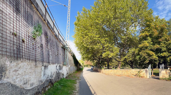 Weil die marode Bahn-Stützmauer erneuert wird, müssen die Platanen auf dem Betzinger Friedhof gefällt werden: Sie stören bei den Bauarbeiten.