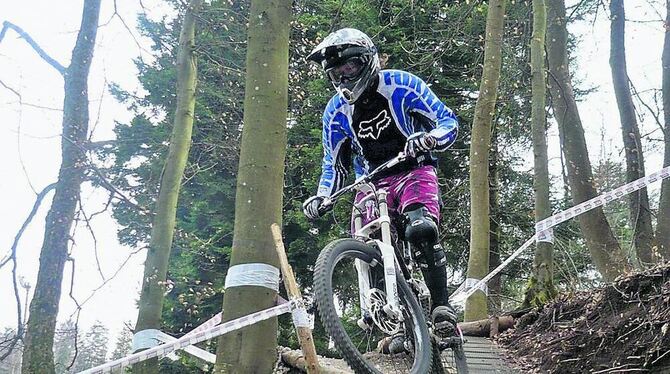 Balancieren, bremsen, lenken über Hindernisse - und immer am Abhang: Downhill ist eine physische wie psychische Extrembelastung - die viele Radfans aber gerade suchen.FOTO: PR