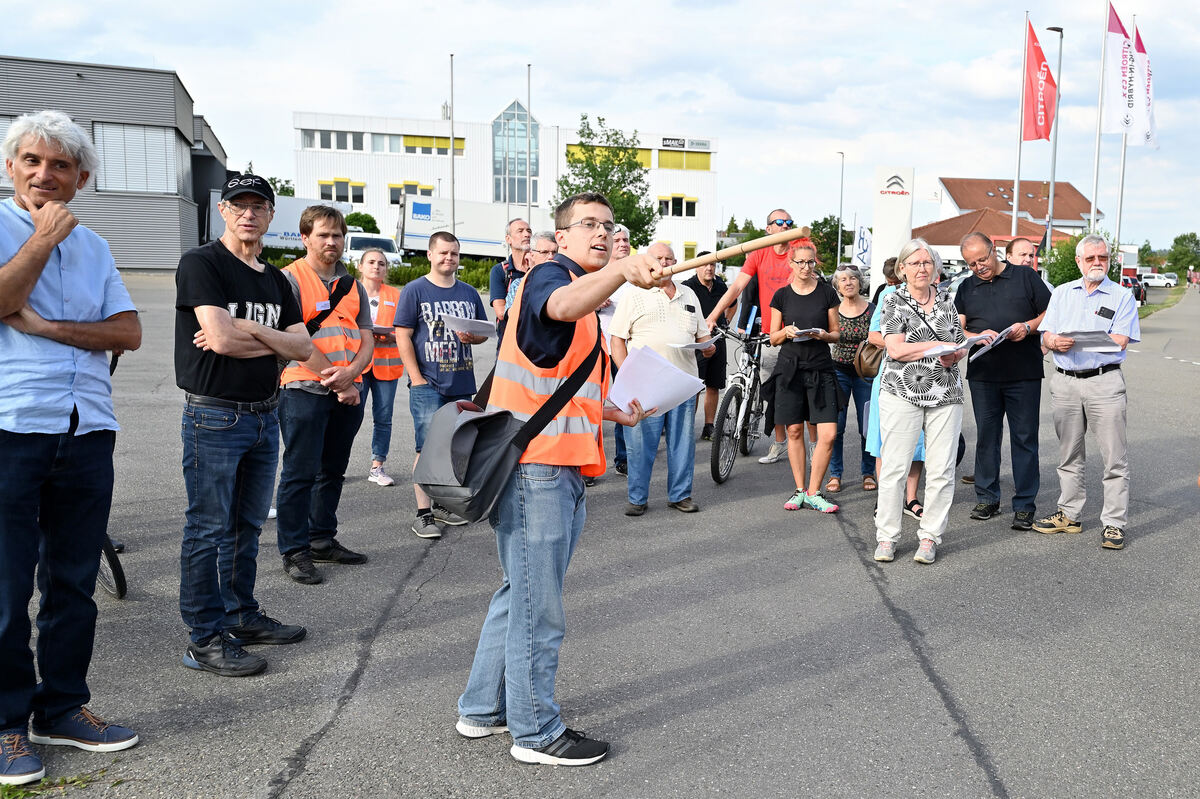 Da geht’s lang – oder auch nicht: Steffen Thomma (Mitte) vom Zweckverband Regionalstadtbahn zeigte beim Planungsspaziergang die verschiedenen Trassenvarianten durchs Betzinger Gewerbegebiet auf. Links Stadtplanungsamtschef Stefan Dvorak.