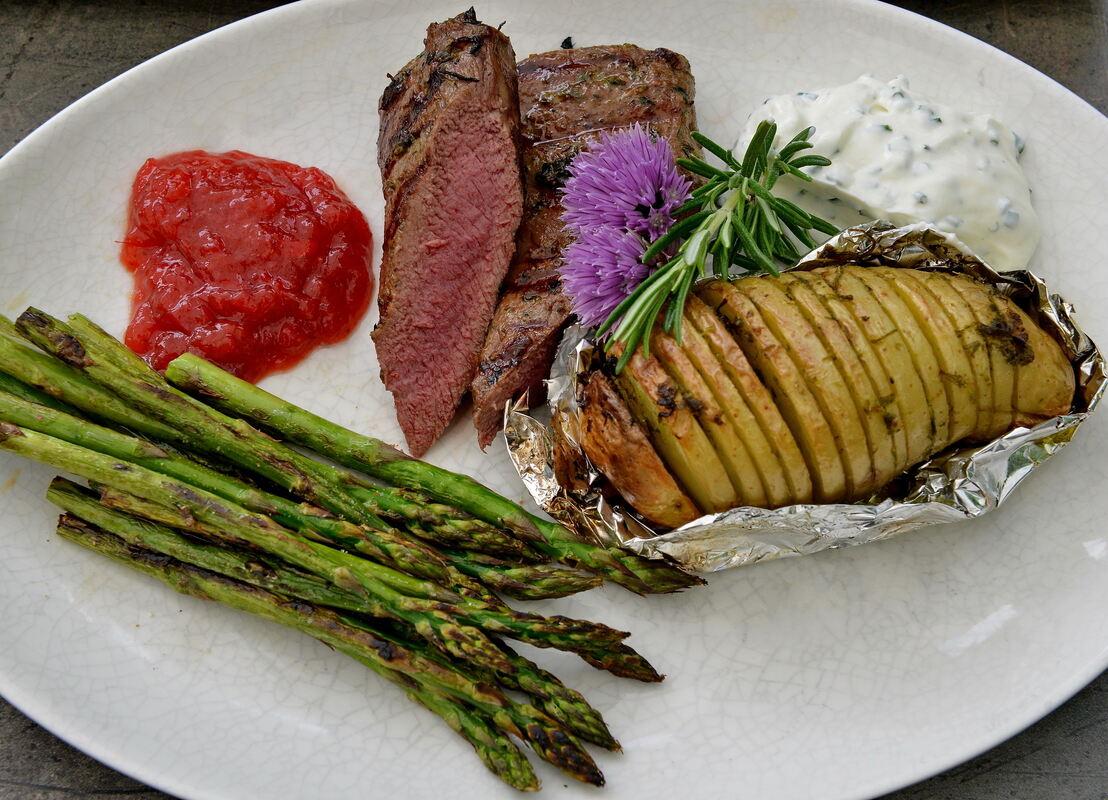 Fleisch, das auf den Grill kommt, muss einen gewissen Fettanteil haben, sagt man. Daniel Seywald zeigt, dass das nicht so sein muss. Der Koch, Metzger und Jäger legt ein Stück Rehrücken auf den Grill. Weil das nun wirklich kein Gramm Fett vorzuweisen hat, mariniert er es am Vorabend. Zu einem ganz besonderen Genuss wird das edle Stück Fleisch durch seinen Begleiter. Keine Preiselbeeren, diesmal ist es ein Erdbeer-Chili-Chutney mit Ingwer. Grandios