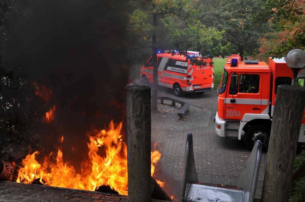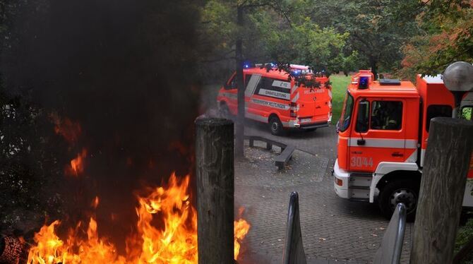 Brennende Reifen auf dem Spielplatz neben der Hohbuch-Halle. FOTO: Petar Cuk