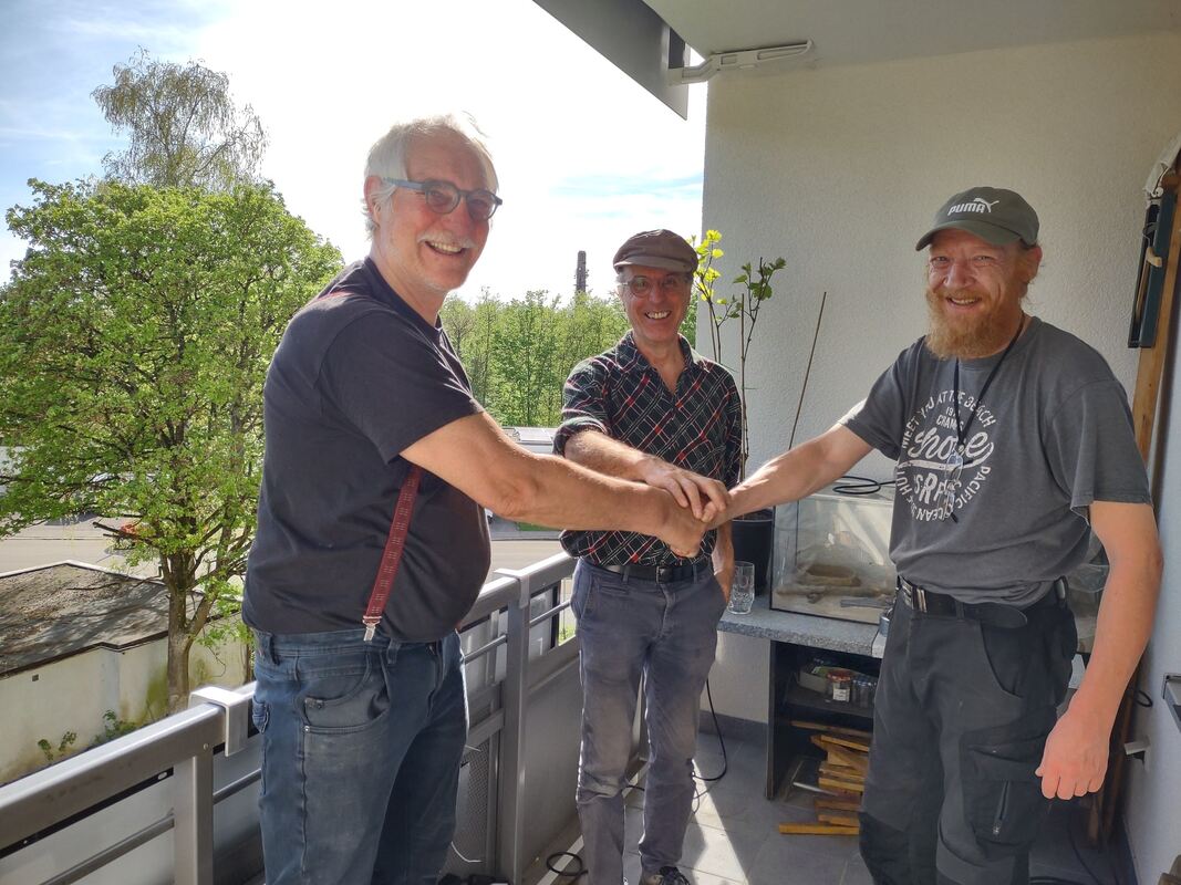 Die erste Balkon-Solaranlage haben Klaus Fink (links) und Erhard Grundler bei Jürgen Trissler realisiert.