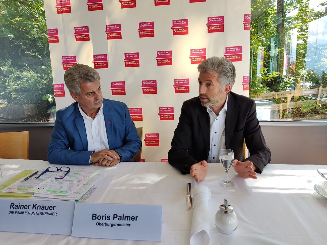 REUTLINGEN. Die Übergewinnsteuer der Bundesregierung »halte ich für eine Fata Morgana«, sagt der Tübinger Oberbürgermeister Boris Palmer. Sie sei rechtlich wohl nicht umsetzbar. Aber er hat eine Lösung parat. Das könne ganz alleine im Strommarkt reguliert werden, sagt er bei der Talkrunde der Familienunternehmer und Jungen Unternehmer auf der Reutlinger Achalm. »Es gibt bisher Fixpreise für Teile des Energiemarktes. Wenn ich übers EEG Sonnenenergie einspeise, bekomme ich immer denselben Preis. So wie ich Vergütungen gesetzlich festschreiben kann, kann ich auch Preise festschreiben. Wir müssen die Nichtgaserzeugung preislich abkoppeln von der Gaserzeugung, dann sinkt der Strom-Durchschnittspreis dramatisch ab. Dann können die Unternehmen überleben.«