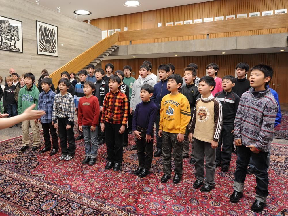 Der Hiroshima Boys Choir beim Empfang im Rathaus, wo er auch eine Friedensbotschaft überbrachte. Heute um 20 Uhr geben die japanischen Sänger gemeinsam mit ihren Gastgebern von der Capella vocalis ein Benefizkonzert in der Marienkirche.