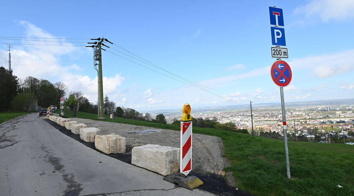 Aus die Maus für Autoposer: Steine verhindern, dass irgendwer auf dem Scheibengipfel mit Ausblick ins Tal parkt. Demnächst kommen Tische und Bänke, damit Wanderer den Ort genießen können.