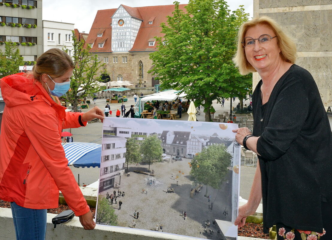 Den Marktplatz zu sanieren, hat Ulrike Hotz (rechts) nicht mehr geschafft. Der Plan dafür steht aber. FOTO: NIETHAMMER