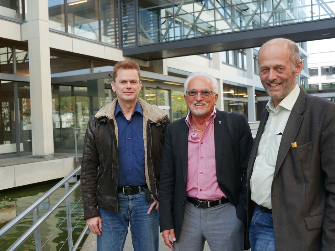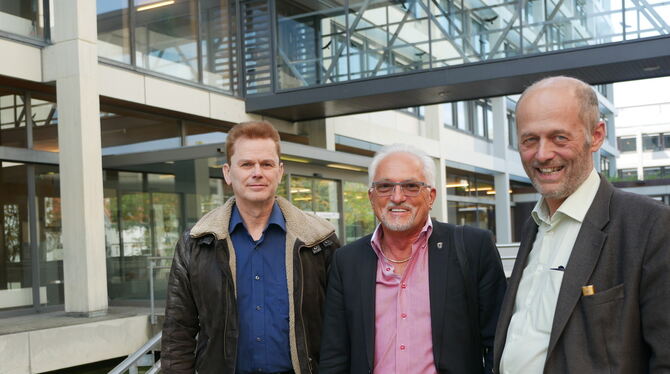Hansjörg Schrade, Hans Peter Stauch und Stefan Kühnel (von rechts) sind drei der insgesamt 13 Kandidaten der AfD, die bei der anstehenden Kommunalwahl in den Reutlinger Gemeinderat kommen wollen. FOTO: LEISTER