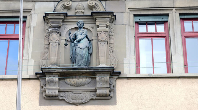 Justizia an der Fassade des Reutlinger Amtsgerichts.