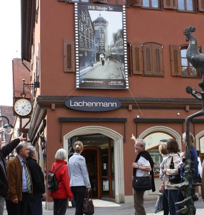 Blick in die historische Katharinenstraße: Raimund Vollmer (Vierter von rechts) führte Interessierte durch die Ausstellung in der Reutlinger Innenstadt.