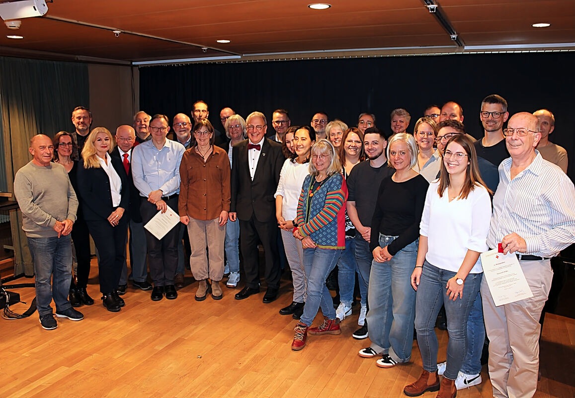 26 Blutspenderinnen und -spender von insgesamt 56 Geehrten waren gekommen und erhielten von Oberbürgermeister Thomas Keck und Thomas Födisch vom DRK Urkunde und Ehrennadel.