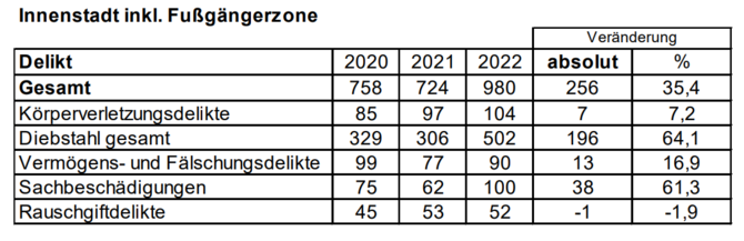 In der Reutlinger Innenstadt ist die Zahl der Straftaten im Jahr 2022 um 35,4 Prozent gestiegen. Quelle: Polizei Reutlingen