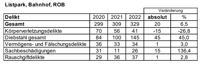 Die Zahl der Straftaten am Listplatz und Reutlinger Hauptbahnhof ist um 6,5 Prozent gestiegen. Quelle: Polizei Reutlingen