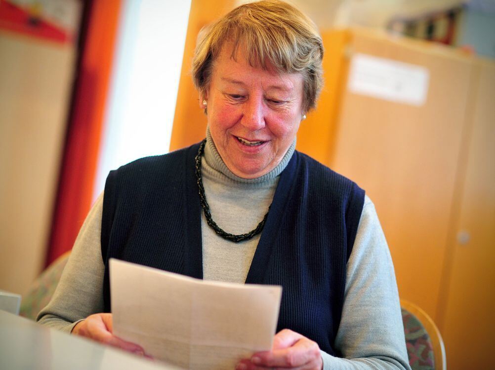 Marianne Geisel liest am 04.12.2012 in Reutlingen in einem Schriftstück in Sütterlinschrift. Die 80-Jährige hilft jungen Menschen die Sütterlinschrift zu entziffern. FOTO: DPA