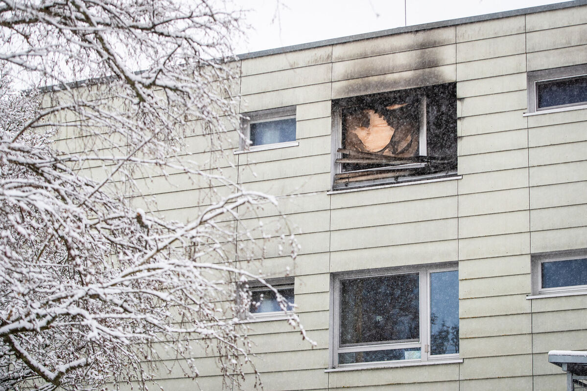 Die Spuren zeugen von der Wucht des Feuers: Das Fenster, hinter dem der Brand ausgebrochen war. Drei Menschen starben.