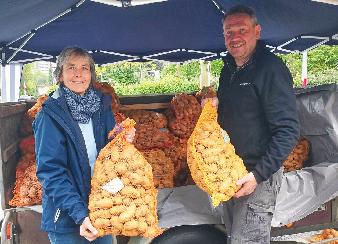 Cornelia Kiefer aus Reutlingen hat noch einen Gewölbekeller und kauft daher bei Franz Geiselhart gleich große Säcke zum Einlagern.