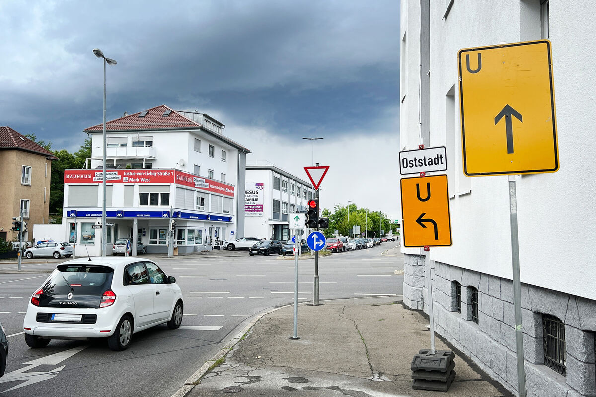 Lieber nicht: Links abbiegen ist an der Kreuzung Karlstraße verboten.