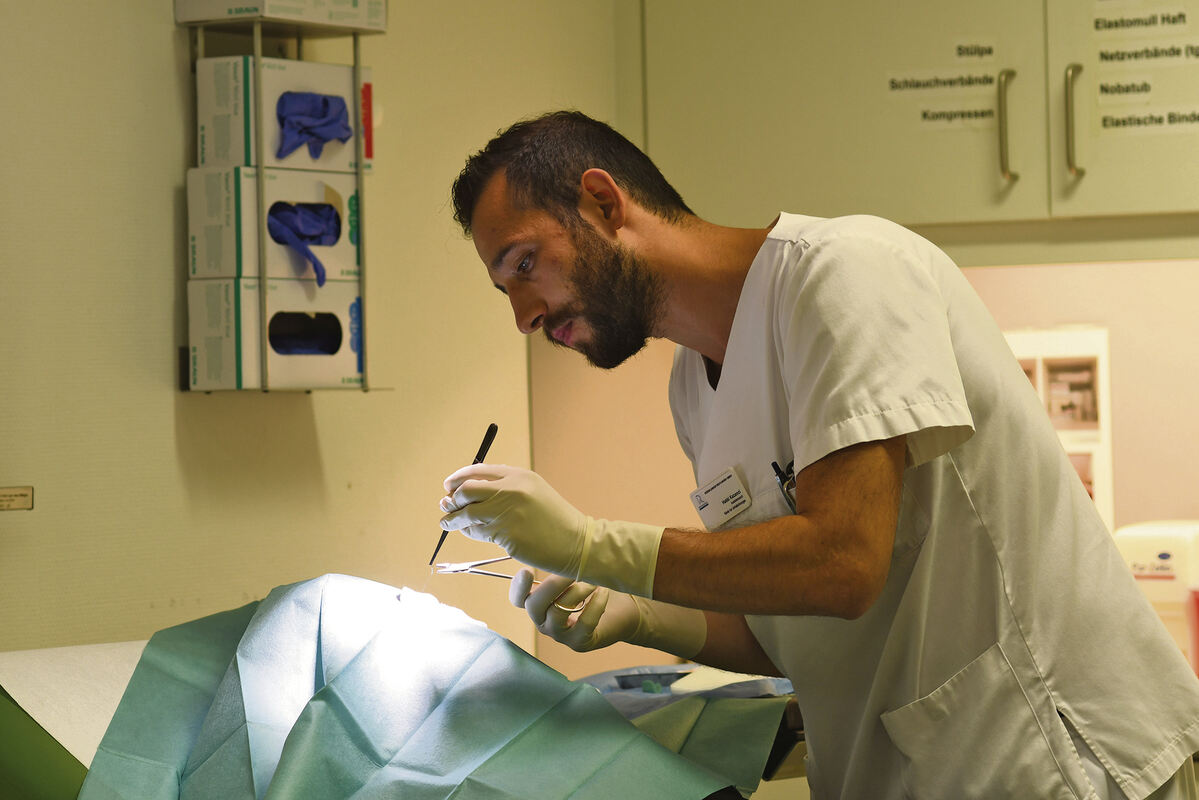 Ein Chirurg behandelt einen Patienten in der Notaufnahme des Klinikums am Steinenberg.