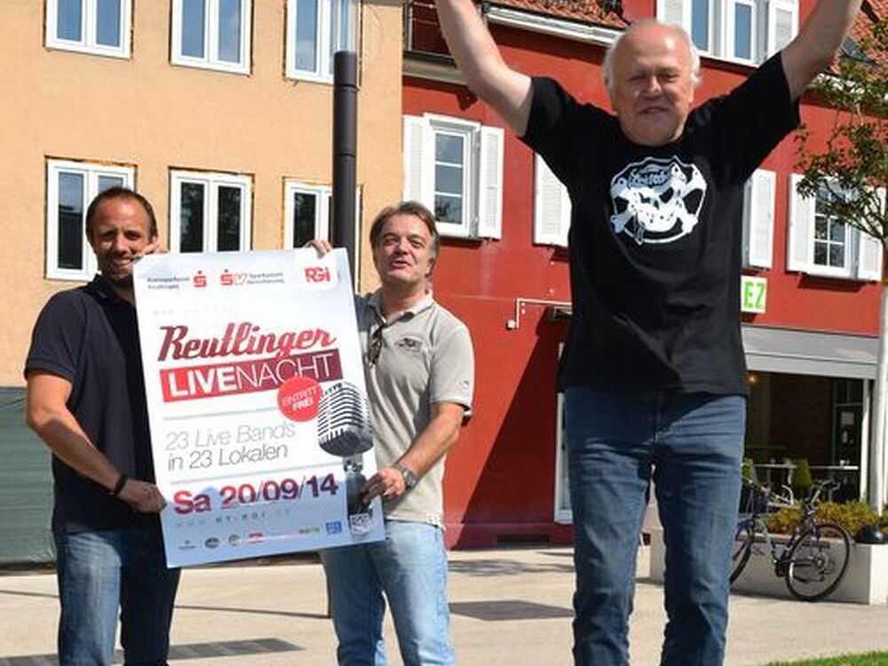 Wolfgang Kohla (von rechts) ist schon auf dem Sprung zur Live-Nacht. Jörg Ottmar und Uwe Grauer halten sich lieber ganz bodenständig am Plakat fest.