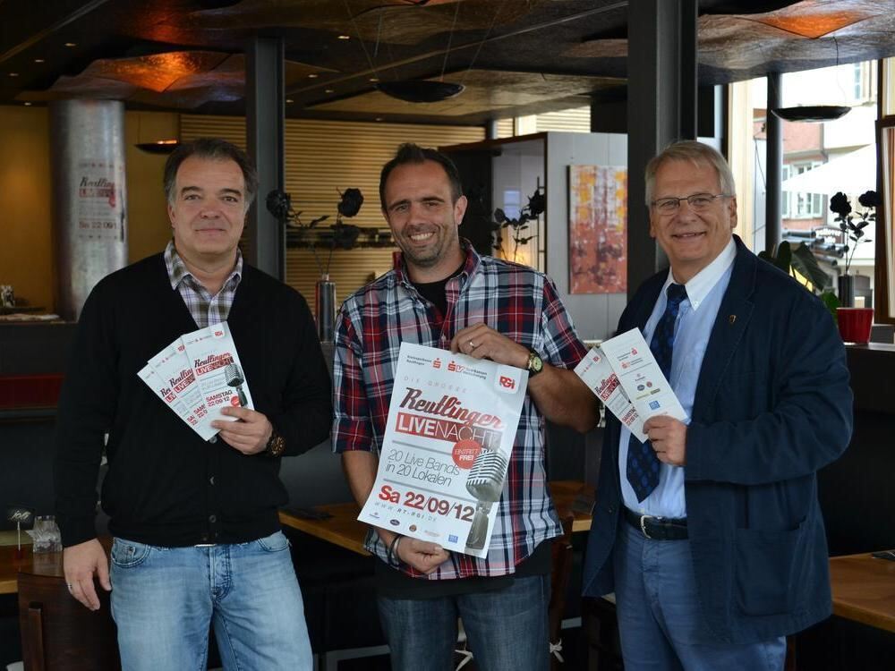 Freuen sich schon auf die achte Live-Nacht (von links): Die Organisatoren Jörg Ottmar, Uwe Grauer und Udo Bodenberger von der Reutlinger Gastro-Initiative.