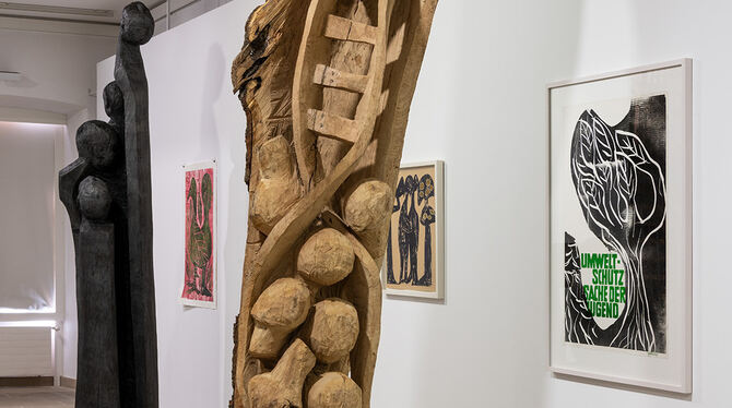 Ganz neu ist die Ausstellung Im Wald geboren. Jems Koko Bi & HAP Grieshaber. Dort erleben die Besucher eine unerwartete Gegenüberstellung dieser beiden Künstler, die sich nie begegnet sind, und die doch viel verbindet. Ein Leben ohne Wald ist für die Menschheit nicht möglich. Nicht nur, weil die grünen Lungen schädliches Kohlendioxid aus der Luft binden und den für unser Überleben notwendigen Sauerstoff produzieren. Nicht nur, weil Holz eine wichtige nachwachsende Ressource ist und als Basis fossiler Brennstoffe für die Industrie und Wirtschaft genutzt wird. Der Wald ist ein Sehnsuchtsraum. Er gibt uns die Möglichkeit, eine andere Umwelt zu erleben, als in urbanen Ballungsräumen, wo die Mehrheit der Menschen wohnt und arbeitet. Die Pandemie, die momentan das Leben einschränkt, verstärkt den Wunsch nach einem solchen Rückzugsort. Wenn die Menschheit den Wald zerstört, zerstört sie sich selbst. Unsere Erfahrungen mit dem Klimawandel und der Umweltverschmutzung zeigen uns das fragile Gleichgewicht der Natur auf: Die reziproken Beziehungen zwischen menschlichem und nicht-menschlichem Leben auf diesem Planeten sind höchst empfindlich.