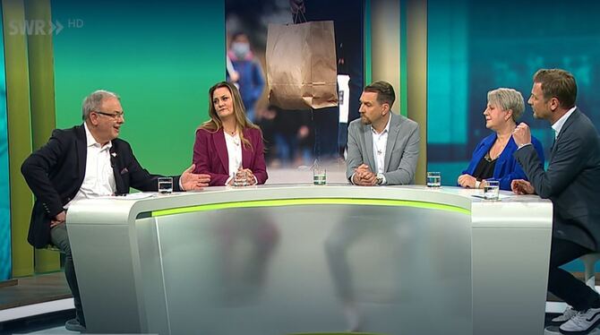 Ein weiterer TV-Bericht, der eingespielt wurde, thematisierte den anhaltenden Trend, immer mehr im Internet zu bestellen. Als Extrembeispiel wurde ein Vater und sein Sohn gezeigt, die nahezu alles online bestellen, von der kompletten Couch-Garnitur bis hin zu einfachen Müllbeuteln. Danach ging es im Studio auch darum, wie dieses Kaufverhalten zur existenziellen Bedrohung für den stationären Handel wird. Reutlingens Rathaus-Chef machte sich im Zusammenhang mit dem Internethandel stark für ein Ende der »Rücksendungsorgien«. Keck dazu: »Dabei gibt es Kunden, die sich 30 Paar Schuhe liefern lassen und 28 davon wieder zurückschicken. Das ist doch nicht nachhaltig.« Das müsse der Staat ganz klar unterbinden. Dafür erntete er bei den anderen in der Runde Zuspruch.