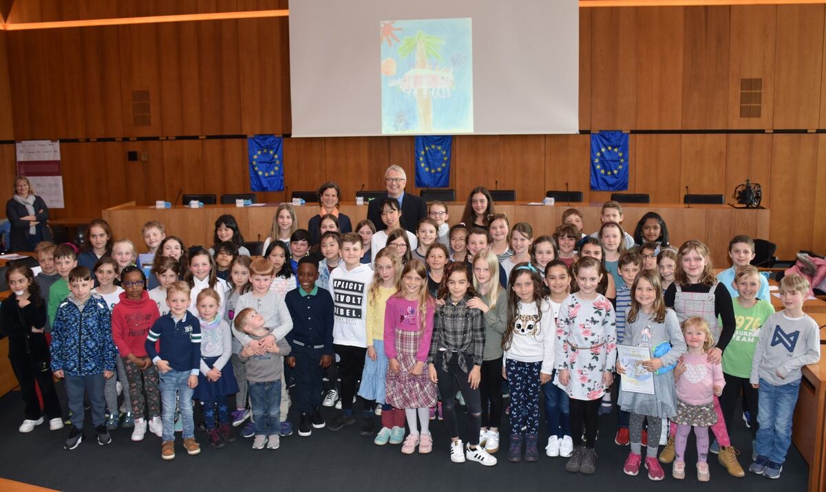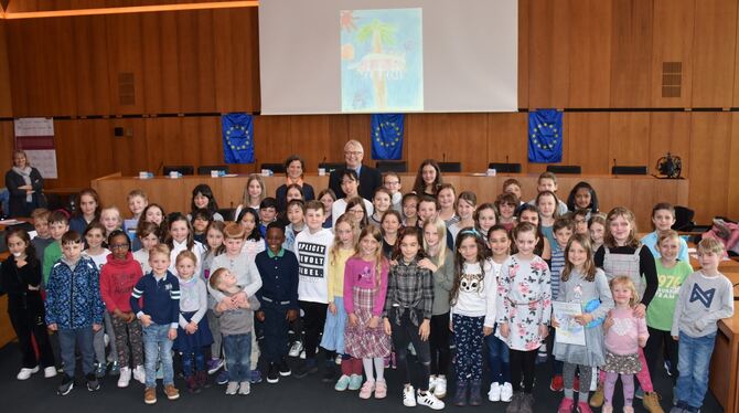 Drei Schulen, 284 Schülerinnen und Schüler, 148 Wettbewerbsbeiträge – »YOUrope – es geht um dich!«, so das Motto des 66. Europäischen Wettbewerbs, hat die jungen Reutlinger offensichtlich inspiriert. »Ihr wart mit dem ›Flugtaxi‹ unterwegs und habt gemalt, was ihr auf eurer Reise durch Europa entdeckt habt«, lobte Bürgermeister Hahn die kreativen Zeichnungen. Die Preisträger kommen aus drei Reutlinger Schulen: Freie Evangelische Schule, Jos-Weiß- und Hohbuch-Grundschule. »Europa und die Welt sind im Wandel. Sich auf die gemeinsamen europäischen Wurzeln zu besinnen, um den Menschen Orientierung und Halt für die Zukunft zu geben, ist wichtig. So ist dieser Wettbewerb eine tolle Möglichkeit in der Schule das Thema Europa aufzunehmen«, sagte der Kulturbürgermeister.