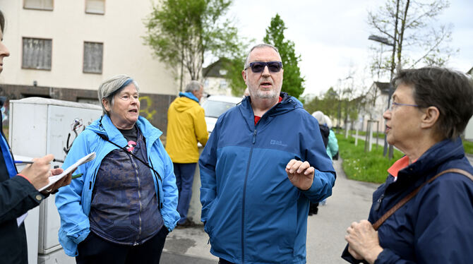 Einer nach dem anderen: Geduldig haben die Ringelbach-Bewohner beim Lokaltermin gewartet, bis sie an die Reihe kamen und ihre Satements abgeben konnten.