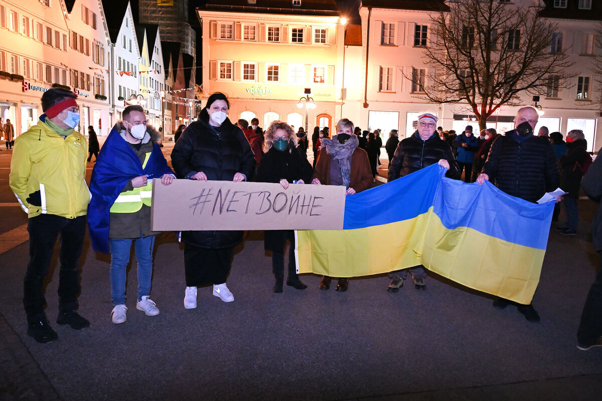 REUTLINGEN. Wegen der völkerrechtswidrigen Invasion Russlands in der Ukraine in der Nacht auf Donnerstag hat der Stadtverband von Bündnis 90/Die Grünen heute spontan zu einer Kundgebung auf dem Marktplatz aufgerufen. Die Versammlung mit 70 Teilnehmern am frühen Abend war überschrieben mit »Frieden für Europa – #StandWithUkraine«. Auch in anderen deutschen Städten gab es Solidaritätskundgebungen für den nach Russland größten Staat Europas. Vertreter der Fraktion die Grünen und Unabhängigen im Gemeinderat, die Grünen-Landtagsabgeordneten Cindy Holmberg und Thomas Poreski sowie die Grünen-Bundestagsabgeordnete Beate Müller-Gemmeke verurteilten den Angriff aufs Schärfste. »Es handelt sich um einen brutalen Angriffskrieg eines lupenreinen Diktators«, sagte Thomas Poreski. »Es ist eine neue Form des Faschismus.« (GEA)