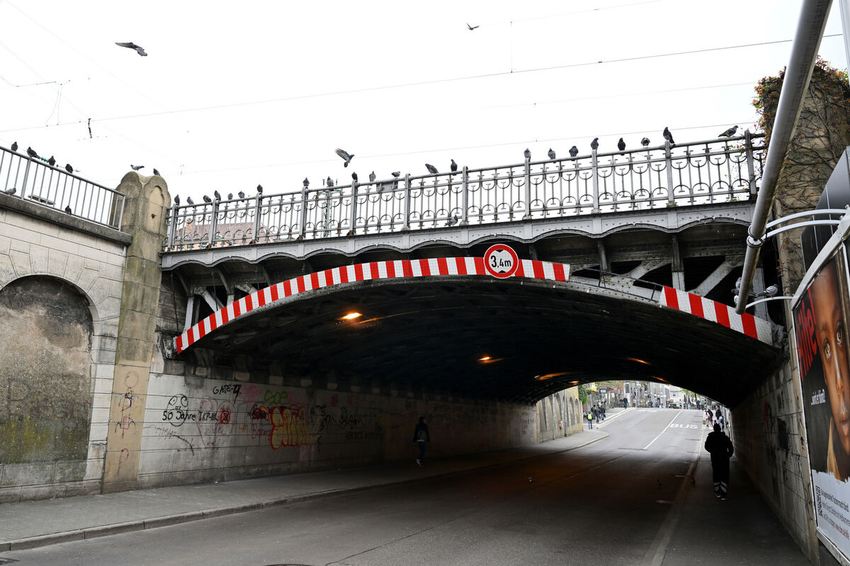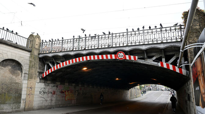Irritiert: Immer noch hocken jede Menge Tauben im Bereich der Eisenbahnbrücke und fliegen unter das Bauwerk, um dort nach Eingängen zu ihren alten Plätzen zu suchen.