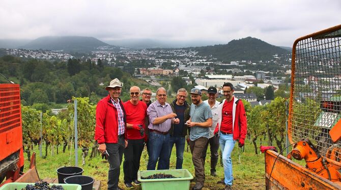 Während am Mittwoch Mitarbeiterinnen und Mitarbeiter des Amts für Wirtschaft und Immobilien und des städtischen Forstbetriebs inklusive Auszubildenden sowie Azubis der Stadtverwaltung lasen, waren es am Donnerstag zusätzlich Oberbürgermeister Thomas Keck, Bürgermeister Roland Winzen sowie Mitglieder des Gemeinderats. Keck ermittelte für den Portugieser 77 Grad Oechsle (2022: 83 Grad), beim Weißwein waren es 79 Grad (2022: 85 Grad).
