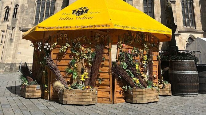Die Vorbereitungen laufen bereits auf Hochtouren, wie beim Spaziergang durch die Innenstadt unschwer am Budenbau zu erkennen ist: Die ersten Lauben stehen schon. Bis zum 7. September dauert das Weindorf. Geöffnet sein wird es am Mittwoch, 21. August, nach der Eröffnung mit dem Duo »Die Jauchzaa« (um 17 Uhr am Weinbrunnen) von 17.30 bis 23 Uhr, ansonsten dienstags bis samstags von 11 bis 23 Uhr. An Sonntagen und Montagen machen die Wirte und Wirtinnen Pause. Die Organisatoren versprechen »über 100 auserlesene Weine«, traditionell schwäbische und andere Schmankerl sowie Livemusik. Die Bewirtung übernehmen die Gutsgaststätte Alteburg, der Forellenhof Rössle, Joli Bar & Events, das Hotel-Restaurant Schwanen, das Café Sommer, das Hotel-Restaurant Stausee und Vohrers Küferzelt. (GEA)