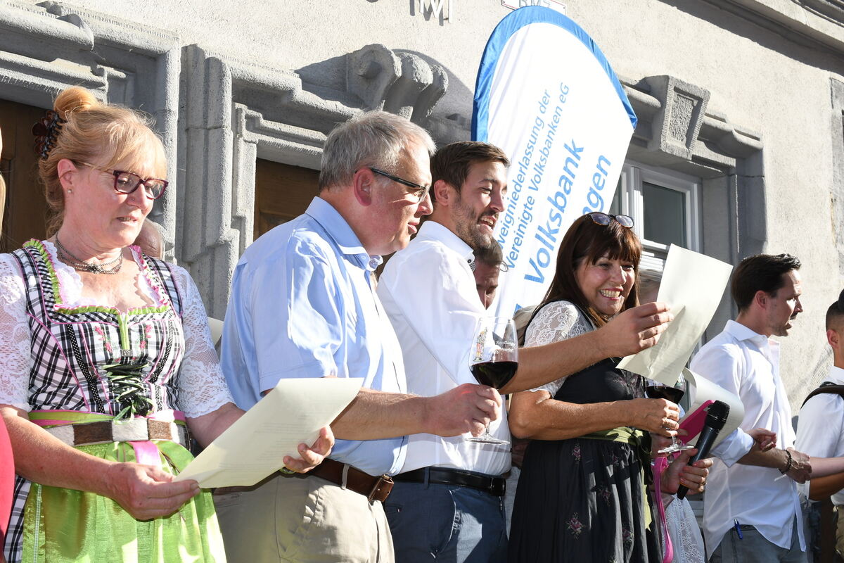 REUTLINGEN. »Wir werden es Ihnen danken, liebe Wirtinnen und Wirte«, hat Oberbürgermeister Thomas Keck am Donnerstagabend zur Eröffnung des 35. »Reutlinger Herbst« der Freude über das nach zweijähriger Durststrecke wieder geöffnete Weindorf Ausdruck verliehen. Gemeinsam mit Organisatorin Regine Vohrer steht das Stadtoberhaupt inmitten der Gastgeber sowie vor begeisterten Besuchern in der strahlenden Sonne beim Naturkundemuseum.