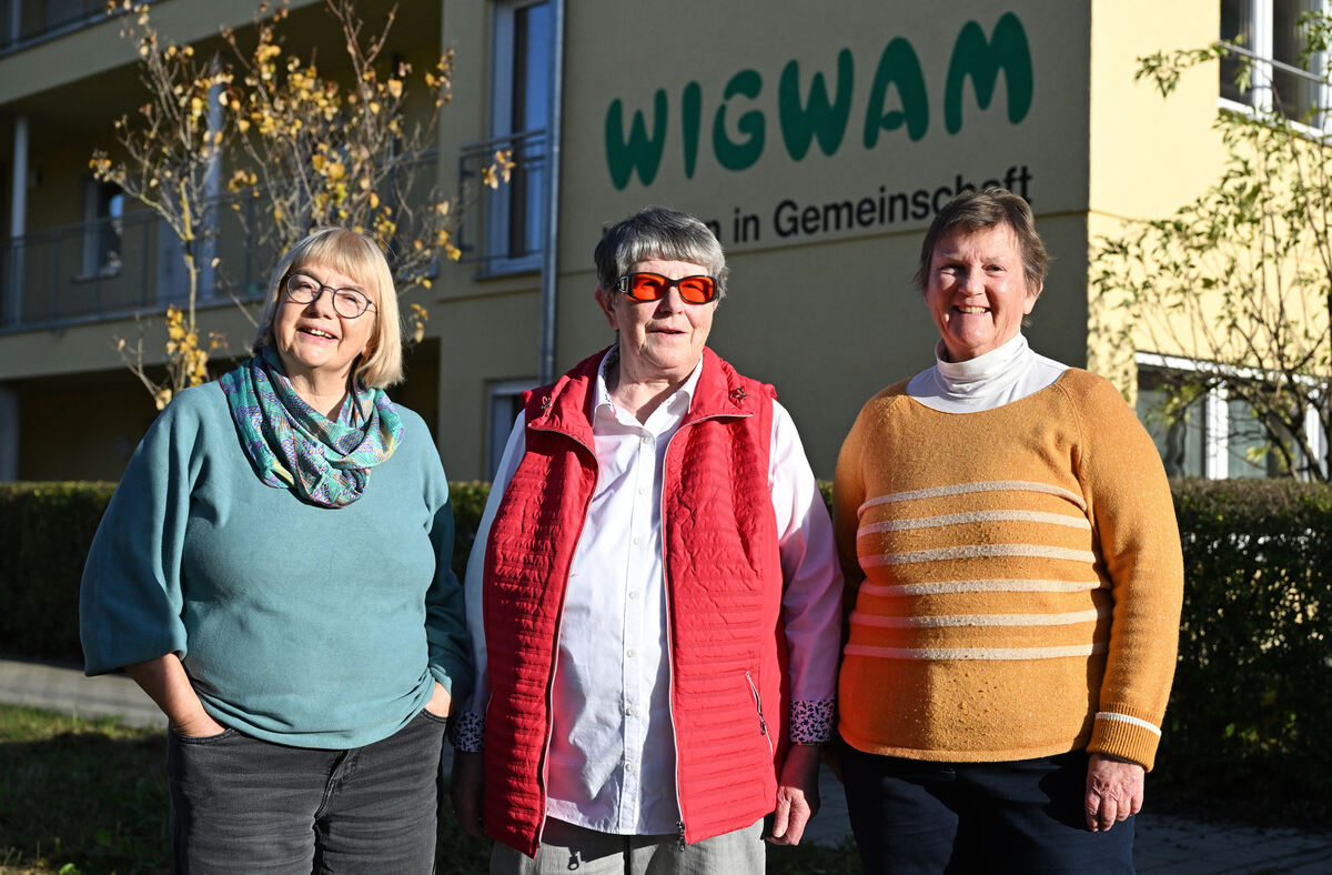 Gemeinsam statt einsam: Kirsten Levene, Marlene Schlegel und Ulrike Droll (von links) sind glücklich im Wohnprojekt Wigwam. Auf dem Bild fehlt Heide Hildebrand, die später zum Gespräch mit dem GEA dazu kam.