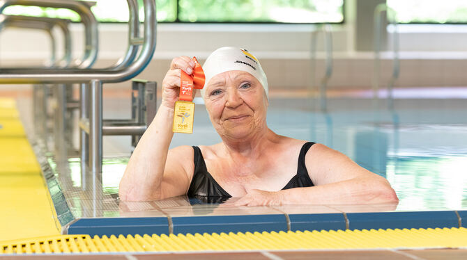Gudrun Manuwald-Seemüller hat dieses Jahr im 50-Meter-Brustschwimmen in ihrer Altersklasse den Weltrekord geknackt. FOTO: SCHANZ