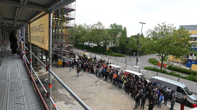 Die Zahlen und Fakten des Projektes sind beeindruckend. Nach dem Grundsatzbeschluss vor einem Jahrzehnt hat das Architekturbüro Riehle Koeth das Haus entworfen. Gebaut wird von der Georg Reisch GmbH, das ausführende Rohbauunternehmen ist die Leonhard Weiss GmbH. Zwischen dem ersten Baggerbiss und dem Richtfest sind nur 704 Tage vergangen, in denen 35.000 Kubikmeter Beton verwendet worden sind. Dabei stimmt laut Fiedler auch das Finanzielle: »Wir überschreiten derzeit die Baukosten um 0,3 Prozent«, strahlt der Landrat. Rund 100 Bauarbeiter sind jeden Tag im Einsatz gewesen, denen Fiedler besonderes Lob und Respekt ausdrückt. Jetzt folgen die Innenarbeiten im Rohbau, etwa das Erstellen von nichttragenden Wänden. Im April sind die Fensterarbeiten geplant, zeitgleich wird die Fassade ihr endgültiges Erscheinungsbild erhalten. Insgesamt werden, so verrät Andreas Reisch als Geschäftsführer des Bauunternehmens, 387.000 Ziegel verbaut werden. Im Mai folgen Rohinstallationen für die Gewerke der technischen Gebäudeausrüstung. Reutlingens größte Baustelle bleibt spannend – und von außen ist vieles zu sehen. (GEA)